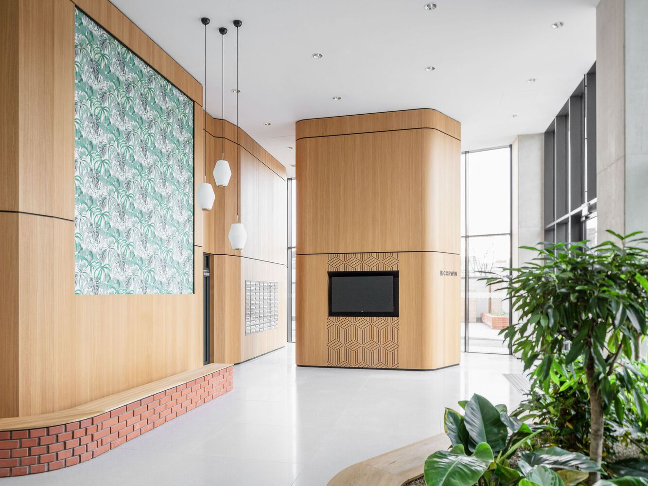 Inside, the design continues to prioritize openness and community. Double-height foyers welcome residents with generosity and natural light, while shared spaces—including a rooftop parking deck—encourage everyday encounters and neighborly connection.