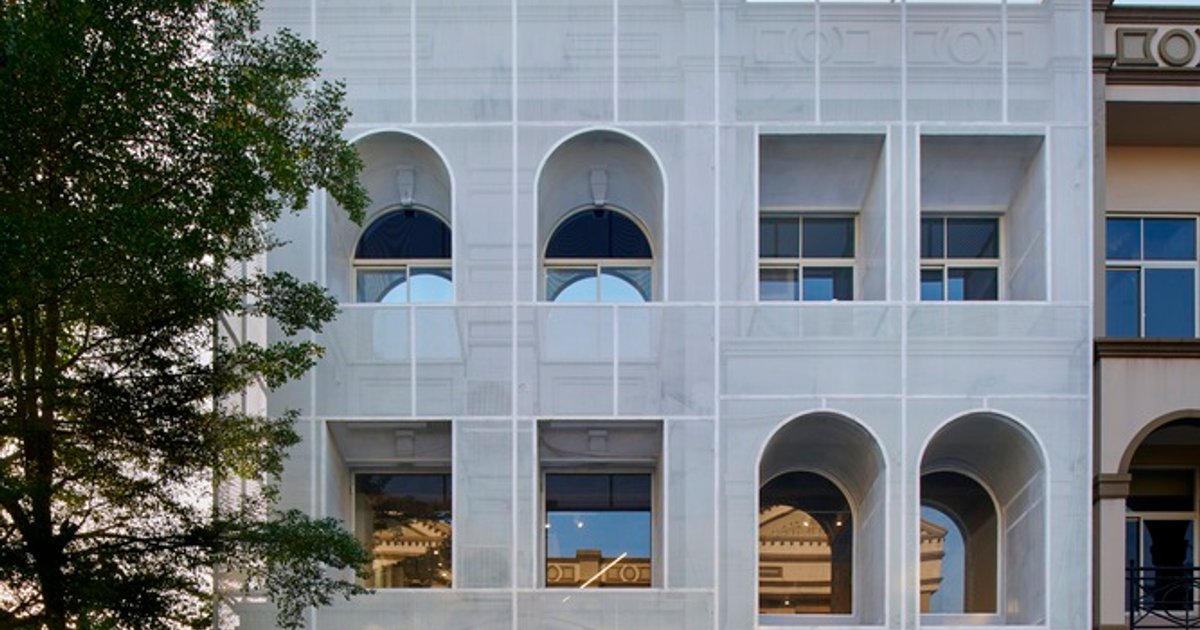Hakken’s façade exemplifies thoughtful detail. Following the rhythm of the existing shophouse, it incorporates square and vault-shaped windows, enhanced by a secondary skin of perforated metal plates. During the day, the façade appears solid and monolithic; by night, it becomes a glowing, semi-transparent lantern, offering a mesmerizing interplay of light, texture, and shadow.