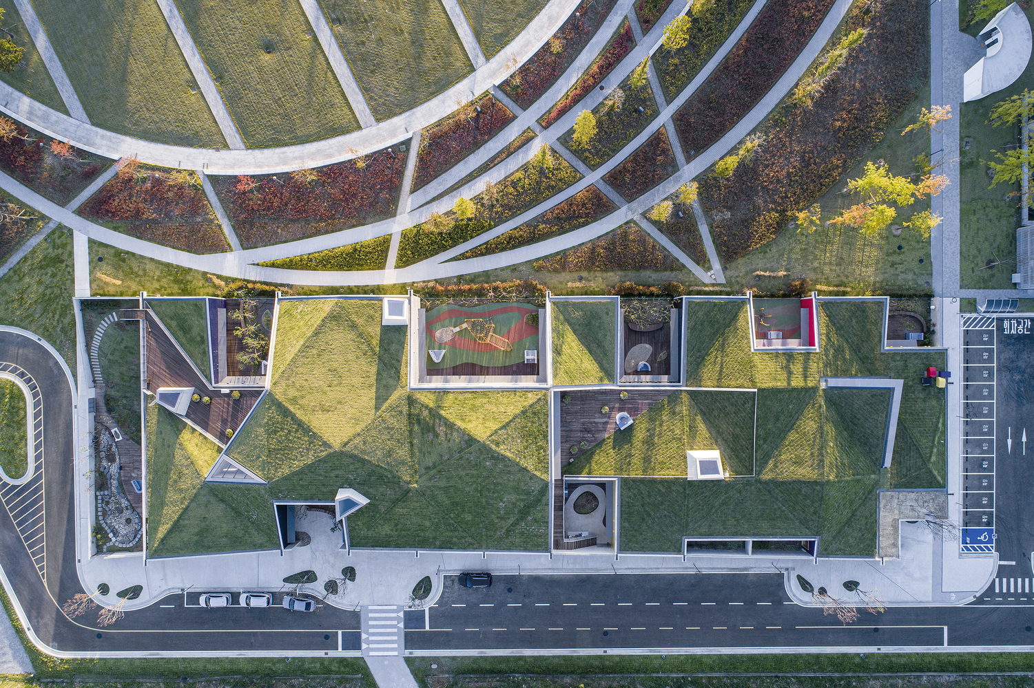 Hana Daycare Center, designed by ISON Architects, is a visionary early childhood facility located in Cheongna District, Incheon, South Korea. This area, developed on reclaimed land, is characterized by a predominantly vehicle-centric urban fabric, where human-scale environments are scarce. In response, the daycare center was designed as a microcosm of a neighborhood, offering children a nurturing space that blends nature, architecture, and community interaction.