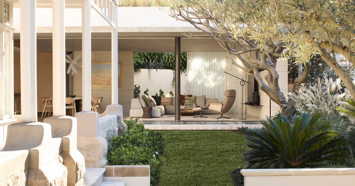 One of the defining elements of Hidden Home is its garden, which blends Victorian landscaping traditions with modern subtropical planting. Designed by William Dangar of Dangar Barin Smith, the garden preserves the historical affinity for manicured lawns while incorporating lush, contemporary greenery. This approach enhances the home’s natural connection to its surroundings, creating a seamless transition between indoor and outdoor spaces.