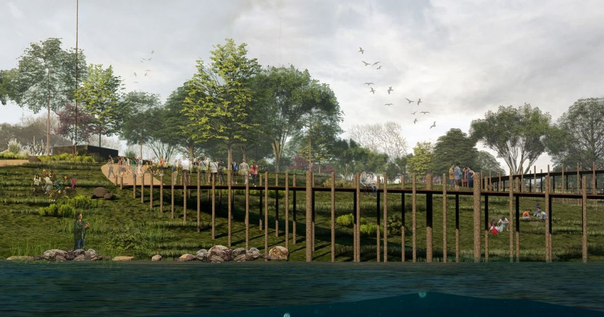 The Hilâl project is designed to offer a public educational experience focused on water conservation. The landscape and circulation are meticulously planned to integrate water as a guiding element, allowing visitors to engage with natural filtration systems. These include rain gardens, wetlands, ECO concrete columns that foster oyster habitats, and a gravel infiltration parking lot, all contributing to an ecologically conscious design.