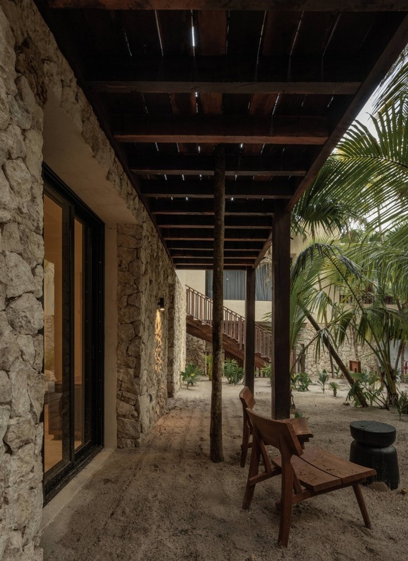 These materials harmonize with Tulum’s environment, offering a warm, tactile, and authentic atmosphere throughout the hotel. Interiors feel grounded and timeless, reinforcing a sense of belonging and connection to place.