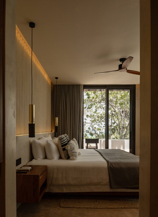 The first phase of the project transformed the footprint of an old hotel into an exclusive private villa. This intimate refuge features five serene guest rooms, each surrounded by lush vegetation. Generous openings allow natural light, greenery, and ocean breezes to permeate the interiors.