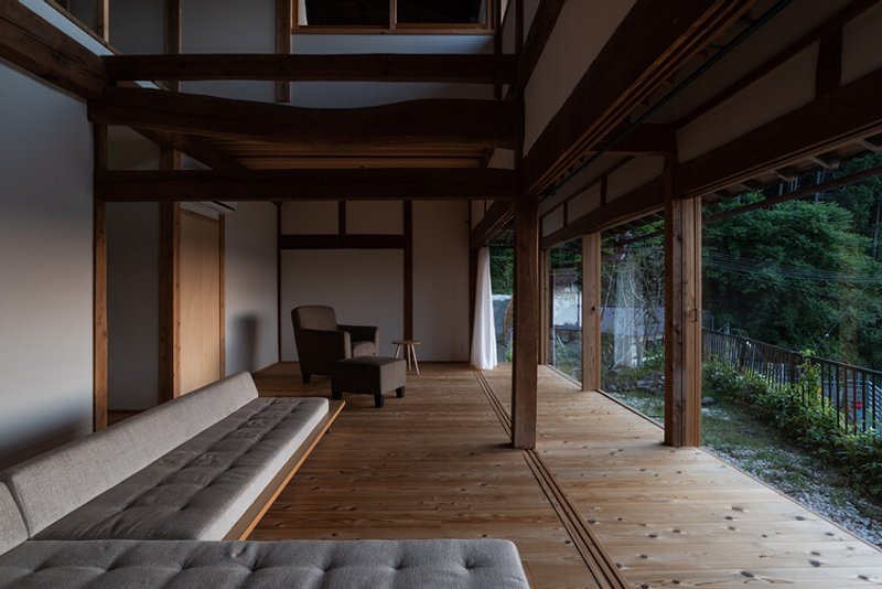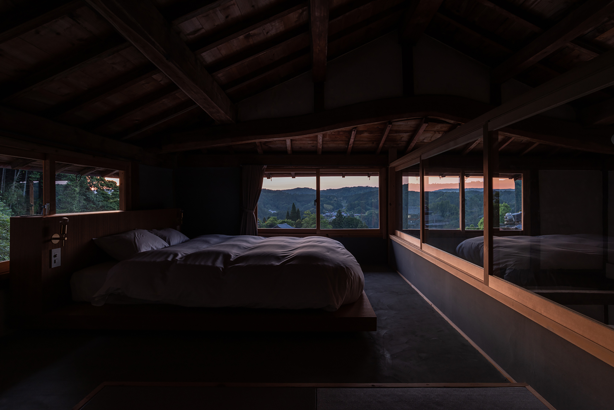 The architecture emphasizes the cyclical rhythms of life—ending the day with sunsets over the valley, awakening to soft morning light, and experiencing the seasonal changes of Yamazoe’s countryside.