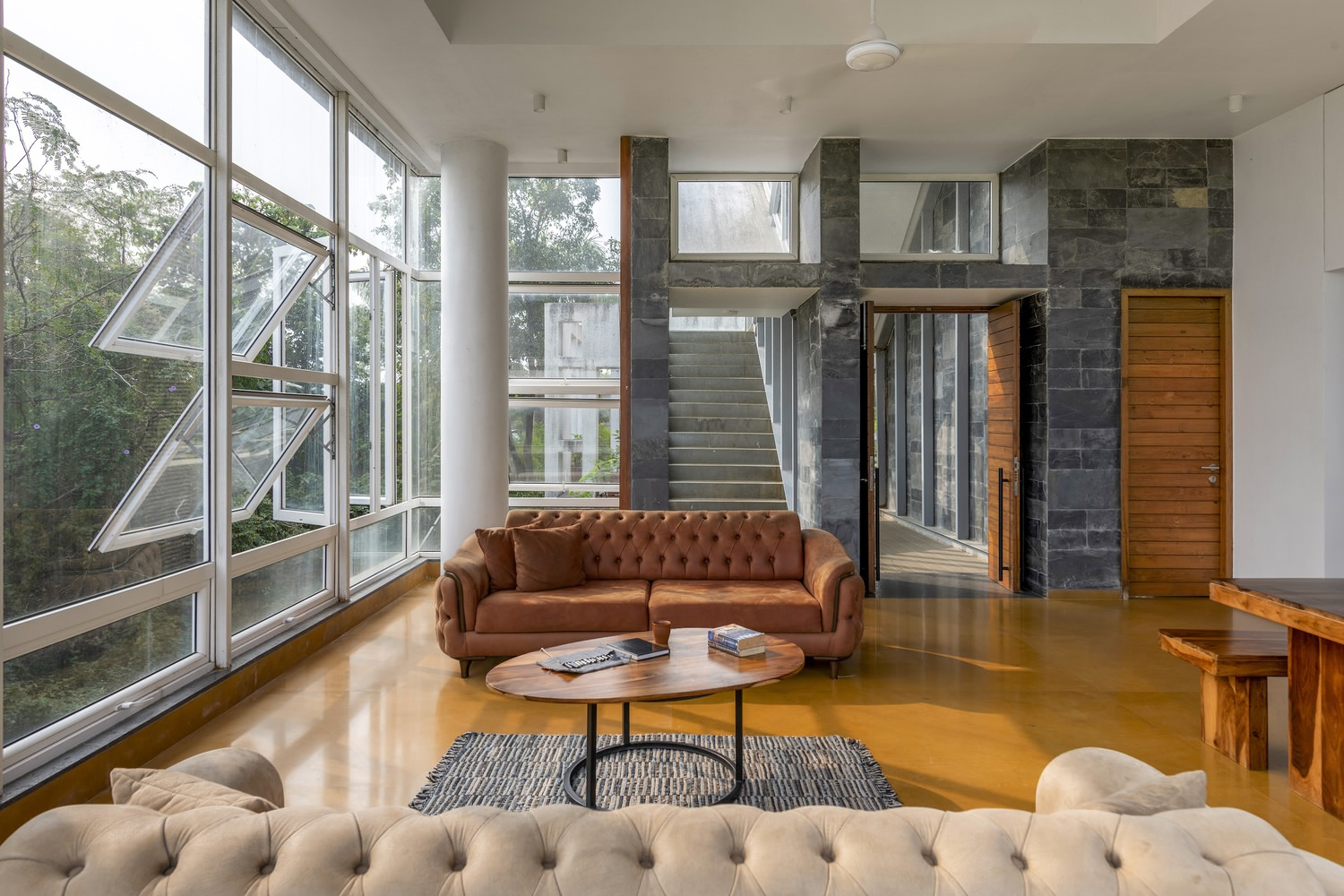 This home is not just a dwelling but a narrative of site-responsive design, material intelligence, and innovative spatial sequencing—perfectly tuned to Aamby Valley’s monsoon climate and topographical challenges.