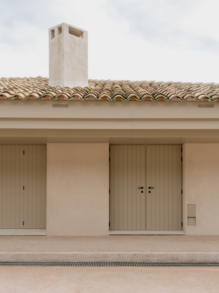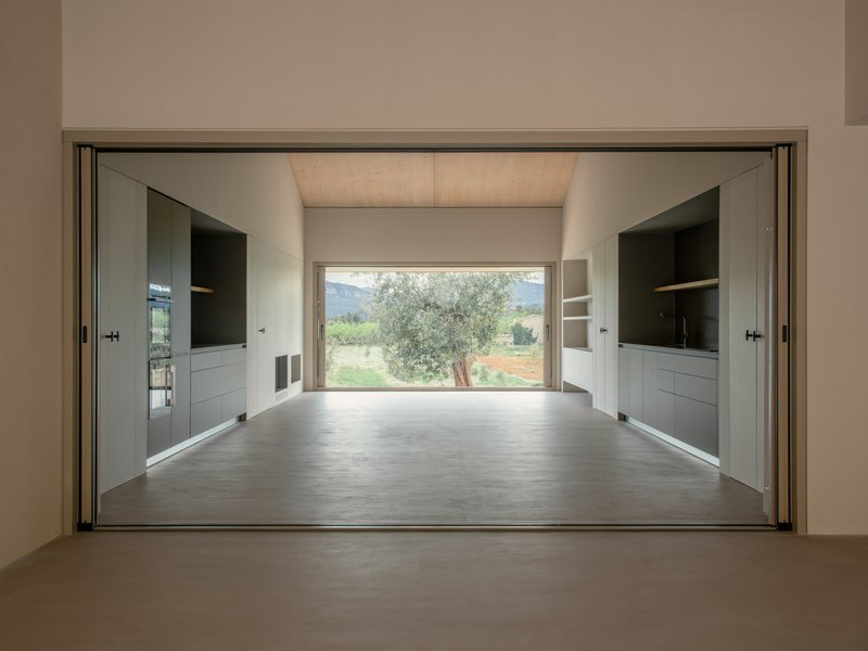 The design of House EF revolves around a central axis, which serves as both a conceptual and functional backbone. This axis guides circulation and creates uninterrupted visual connections throughout the home, offering framed views of the surrounding olive trees and vineyards. The residence is composed of three distinct volumes: