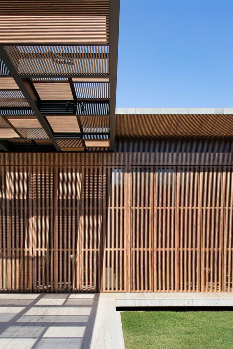 Vertical wood panels line the façade, acting as veils that filter sunlight and create a rhythm of openness and retreat. These elements transform the elevation into a living skin, capable of breathing with the daily rhythms of life. Romano’s intention is not simply to build, but to craft an architectural language that speaks softly and clearly.