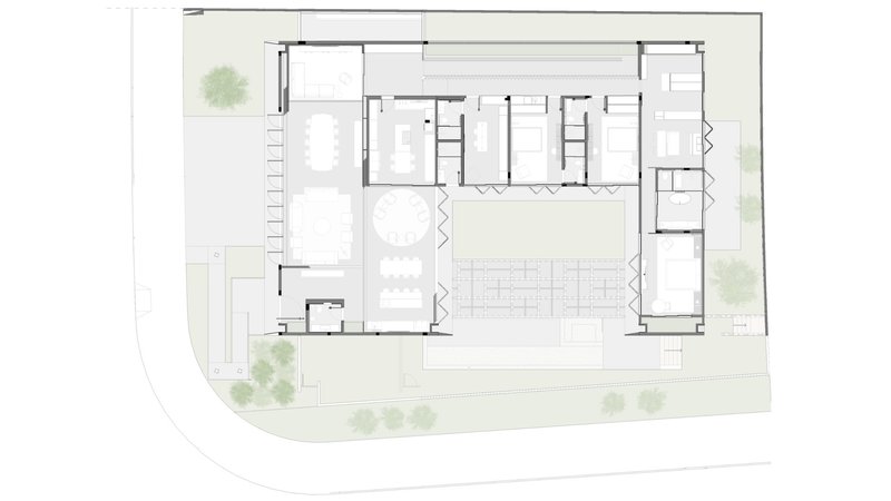 This contemplative pause in the layout serves as a junction between social and private spaces, allowing light to spill across interior volumes and connecting the built environment with the open sky. Here, architecture becomes meditation.