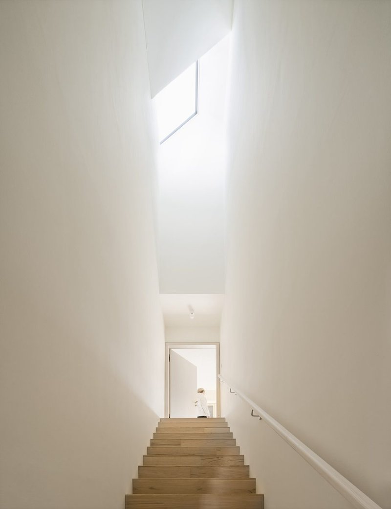 House Hoinka contains two residential units cleverly nested within one structure. Each unit is connected to the garden via a direct stair, with mirrored layouts providing panoramic views in all four directions: