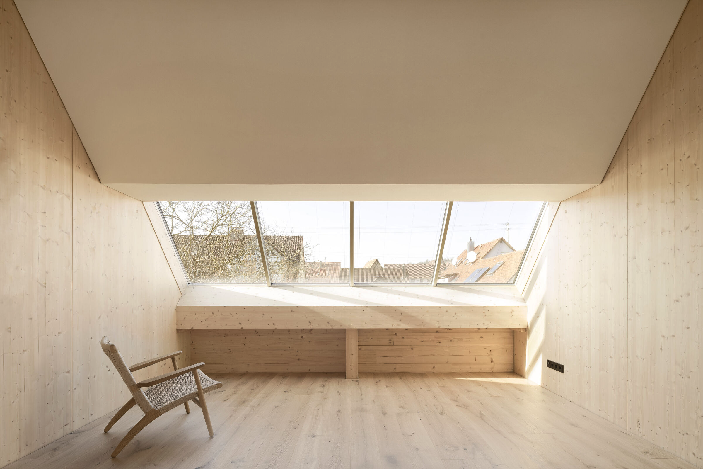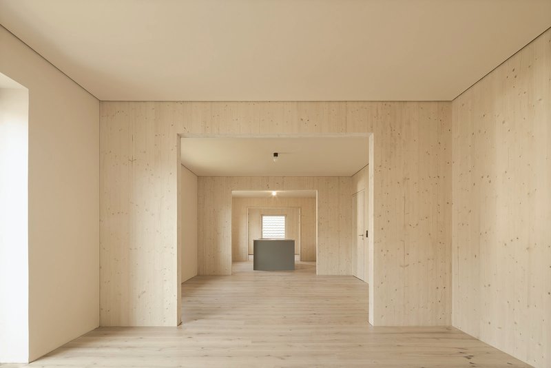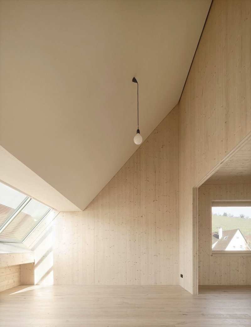 Atelier Kaiser Shen’s approach is rooted in natural and renewable raw materials. The house uses straw bales with clay plaster as the primary thermal envelope for walls, roofs, floors, and ceilings. This low-tech yet highly efficient technique dates back to the 19th century and is now celebrated for its ecological and climate-friendly benefits.