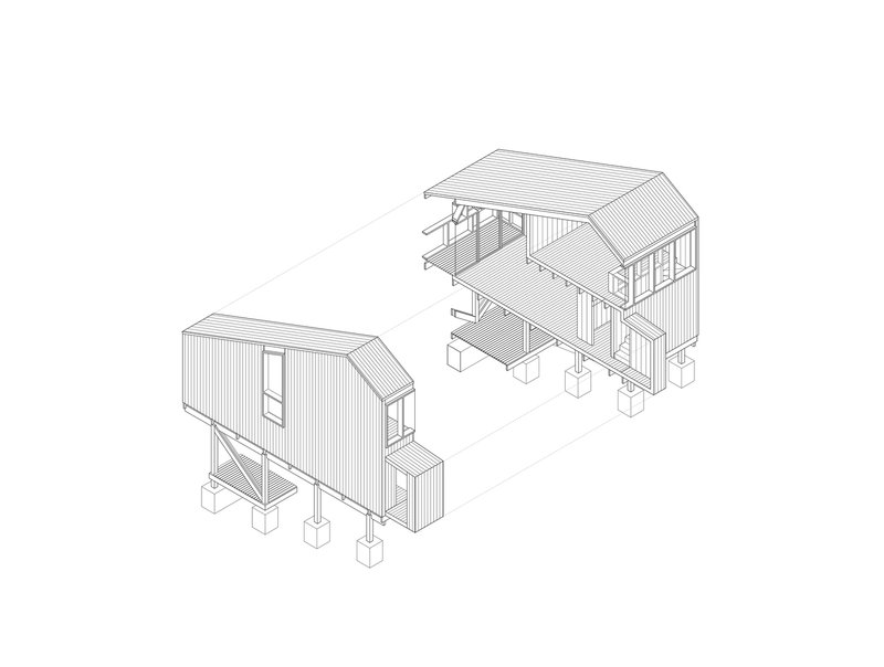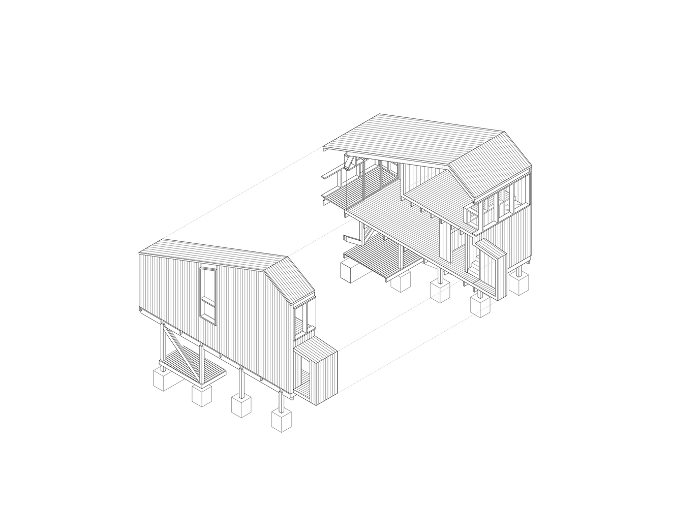 The house employs a combination of wood carpentry and SIP panels, ensuring modular coordination across all elements. This approach merges sustainable construction methods with local craftsmanship, achieving efficiency, durability, and thermal performance. The material palette enhances the home’s integration into its rural context while giving it a contemporary presence.