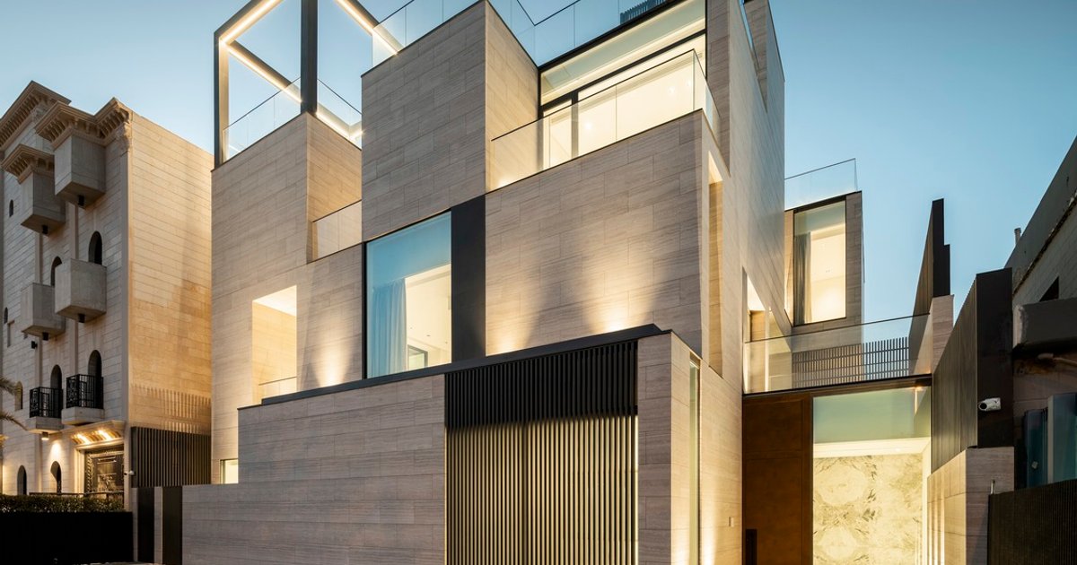 - High-Performance Materials: The exterior of the house is clad in Italian travertine, high-performance glass, and dark metal trims, creating a beautiful contrast with the surrounding environment. These materials not only add elegance to the design but also play a key role in passive cooling and energy efficiency.