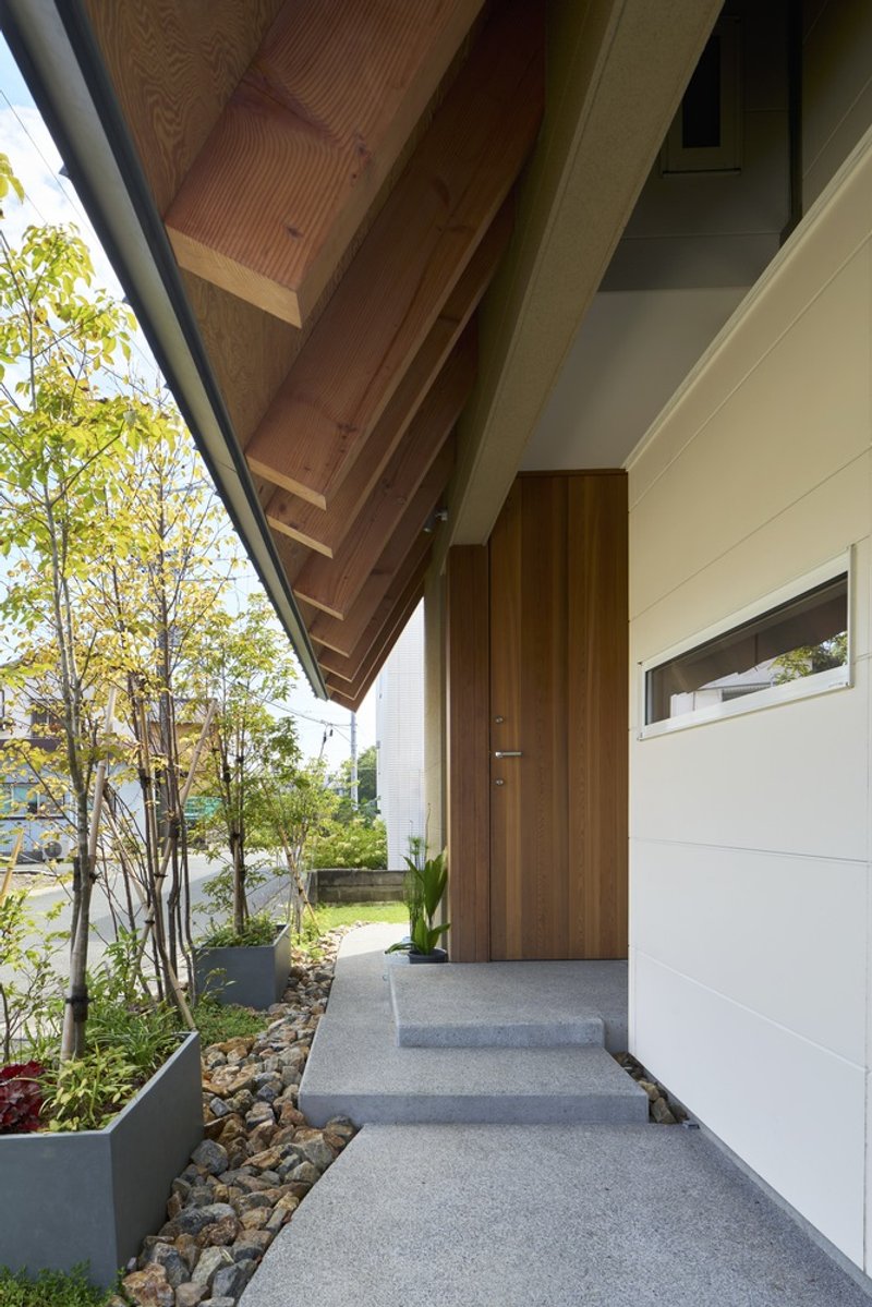 Natural light plays a crucial role in shaping the atmosphere of this Japanese house. The protruding walls and offset geometries catch daylight differently throughout the seasons and time of day. This creates: