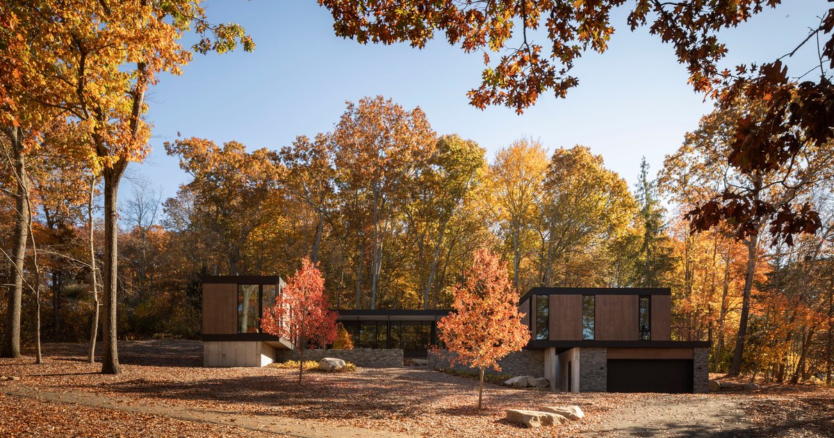 House in the Woods by Tom Lontine Architect is a 4,400-square-foot contemporary residence quietly embedded in a sloped, wooded site overlooking the Connecticut River in Deep River, United States. Designed for two professionals seeking a peaceful, long-term home, the architecture emphasizes aging-in-place comfort, natural immersion, and a refined connection to the forest.