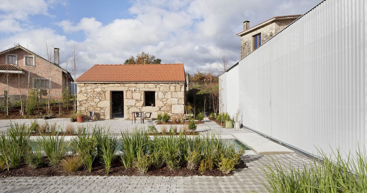 House in Xinzo blends traditional Galician architecture with modern design, featuring open-plan living, courtyards, raw materials, and seamless indoor-outdoor connections.