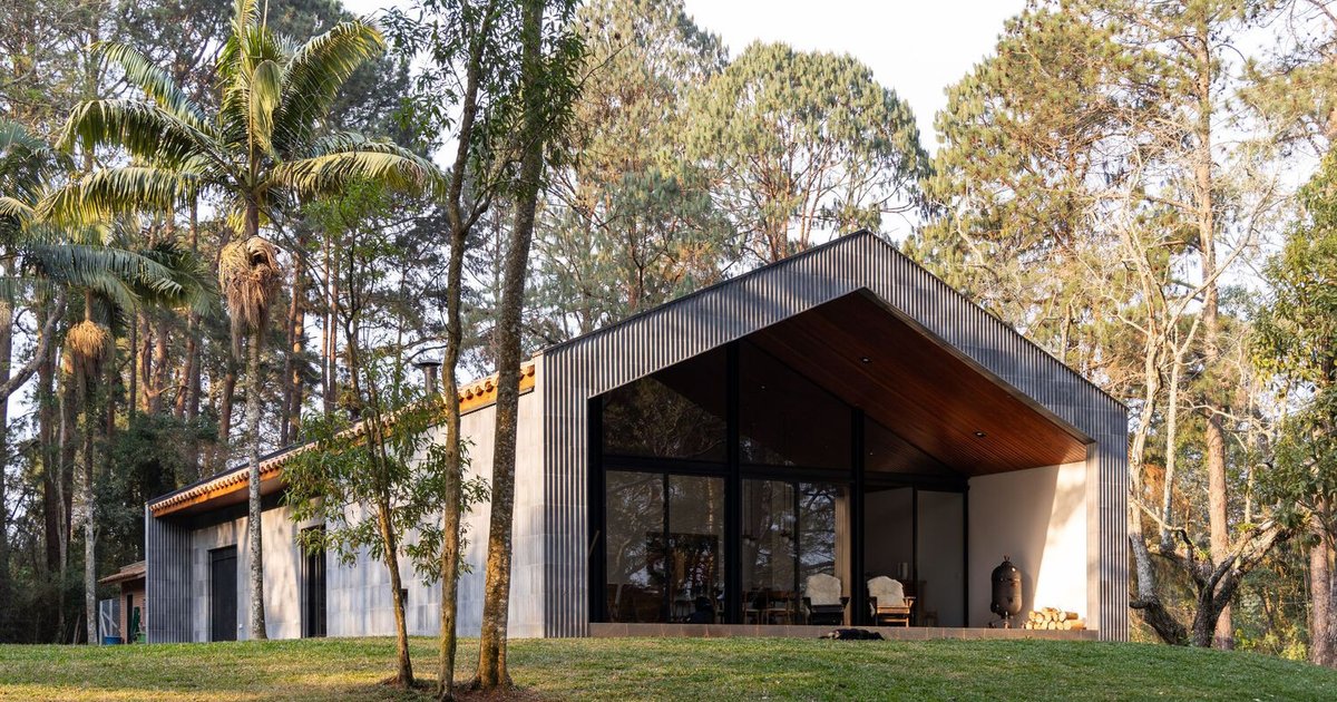 House Lhama blends traditional architecture with nature, featuring sustainable materials, passive heating, and seamless indoor-outdoor integration in São Roque, Brazil.