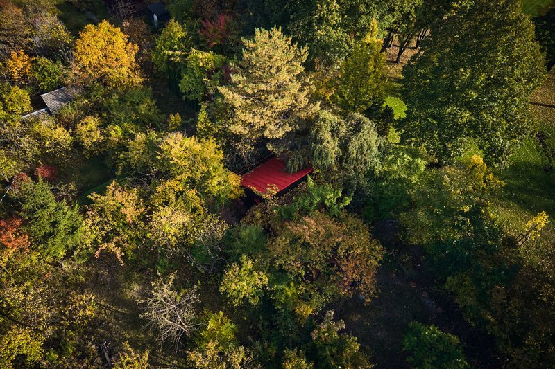 The House of Color Downtown Oasis by NOKE Architects is a stunning example of modern garden house architecture, situated just a few metro stops from the bustling center of Warsaw, Poland. Designed for Magda Grabowska-Wacławek, known as Bovska, and her husband Grzegorz Wacławek, the founder of Animoon studio, this colorful sanctuary offers an urban escape within a family allotment garden. Nestled between the lively Śródmieście district and the peaceful green area of Żoliborz, the house strikes a perfect balance between city life and nature, providing a vibrant and creative haven for its owners.