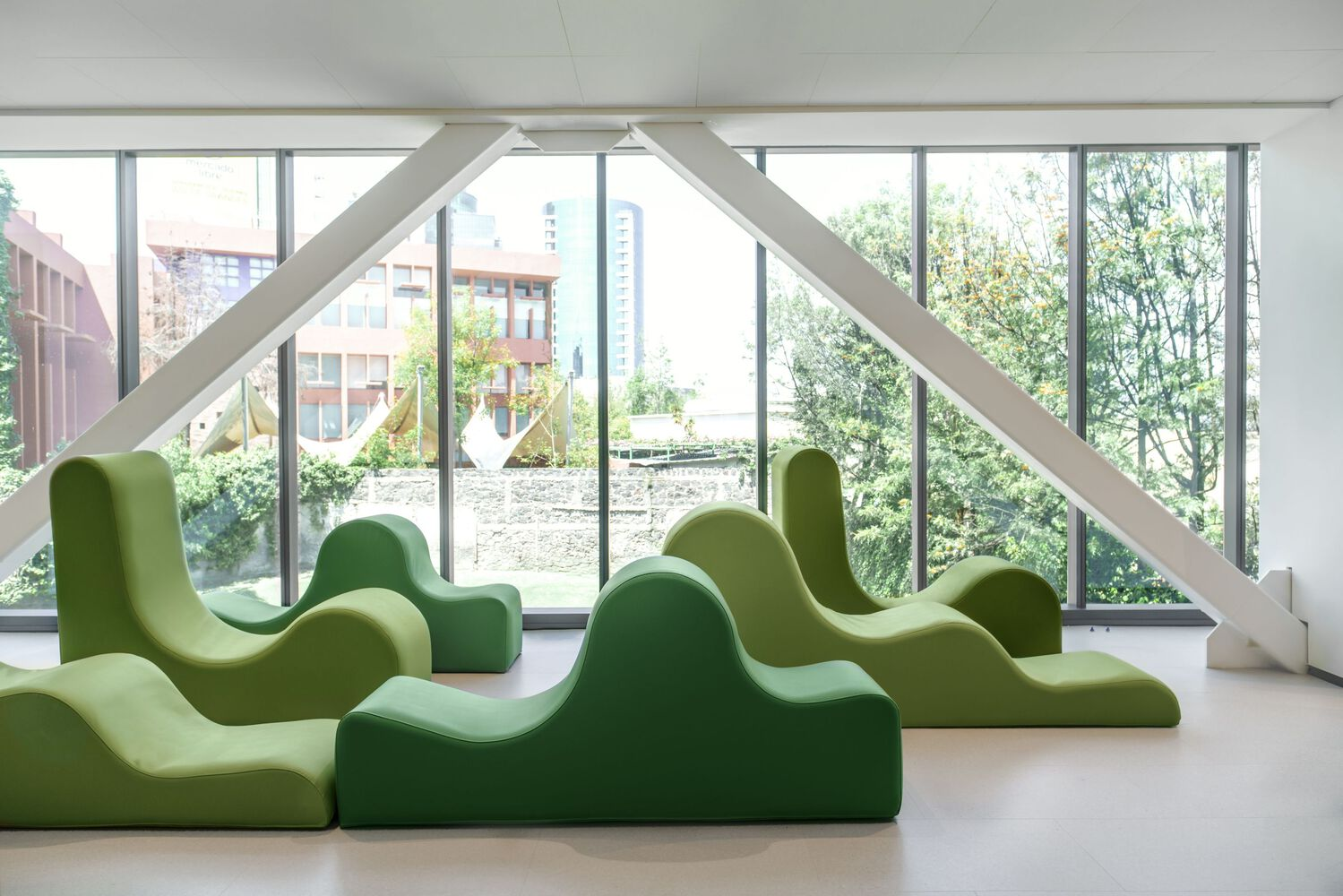 Humanitree School Hive and Flight, designed by Rosan Bosch Studio, reimagines contemporary educational architecture by transforming 10,000 square meters of upper floors within an existing office building in Mexico City into a holistic, future-ready learning ecosystem. Completed in 2023, the middle and high school campus embodies a learner-centered philosophy, where spatial diversity, flexibility, and curiosity-driven design empower students to take ownership of how, where, and with whom they learn.
