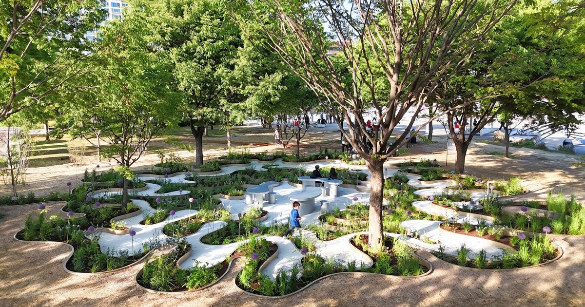 A layered, immersive urban garden in Seoul offering a serene, resilient retreat through perennial planting, ecological design, and three-dimensional spatial experience.