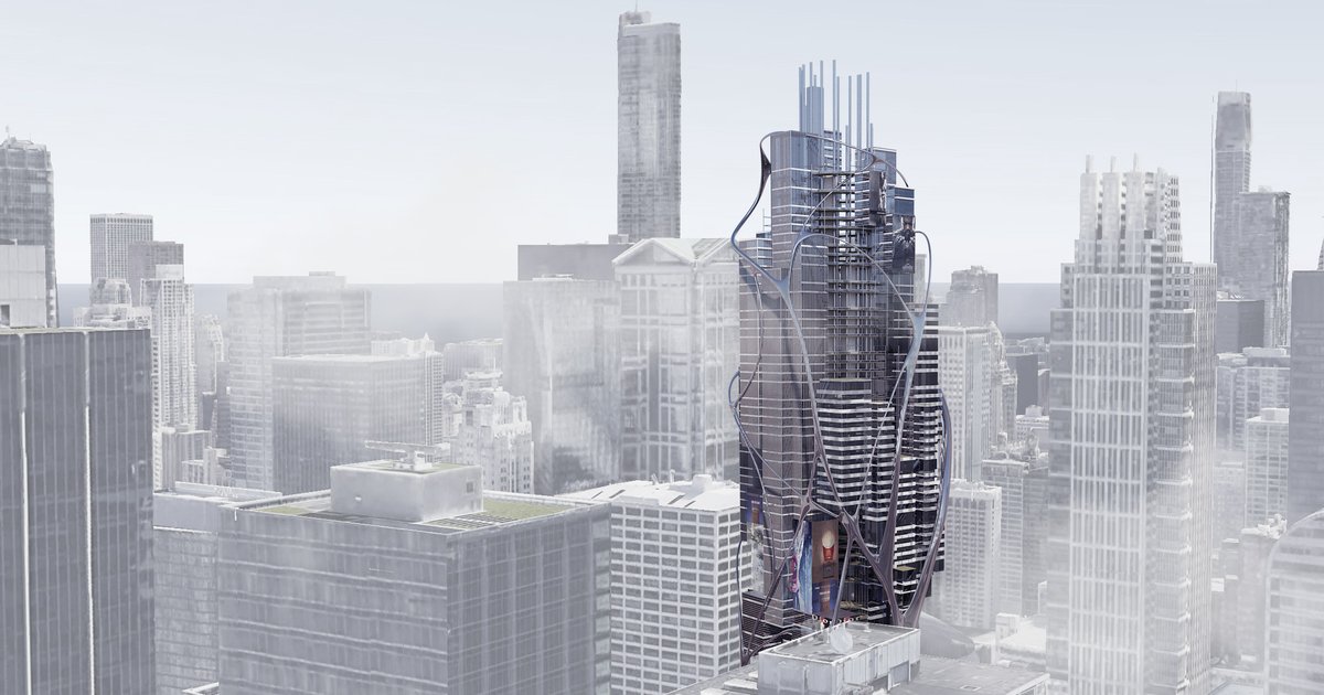 The building is divided into a multitude of units hung from the central structural core. It is the public who, decides the function, location, and size of each unit to add to the structure. The building will grow gradually and organically, as opposed to full determinism of developers. The building is generated from the ground up, mimicking the growth of a tree. The façade of the building, made of polished metal and in an organic form, suggests the notion of future growth. Each program is also assigned a different façade articulation as needed. For example, residential units have balconies while retail and art museums have LED panels or large banners hung from their façade.