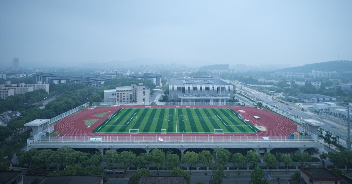 The Indoor Sports Field of Shaoxing University redefines the relationship between architecture, people, and urban spaces. Designed by UAD. Designed to integrate seamlessly into the surrounding cityscape, this state-of-the-art sports facility fosters community engagement, encourages physical activity, and enhances spatial fluidity.