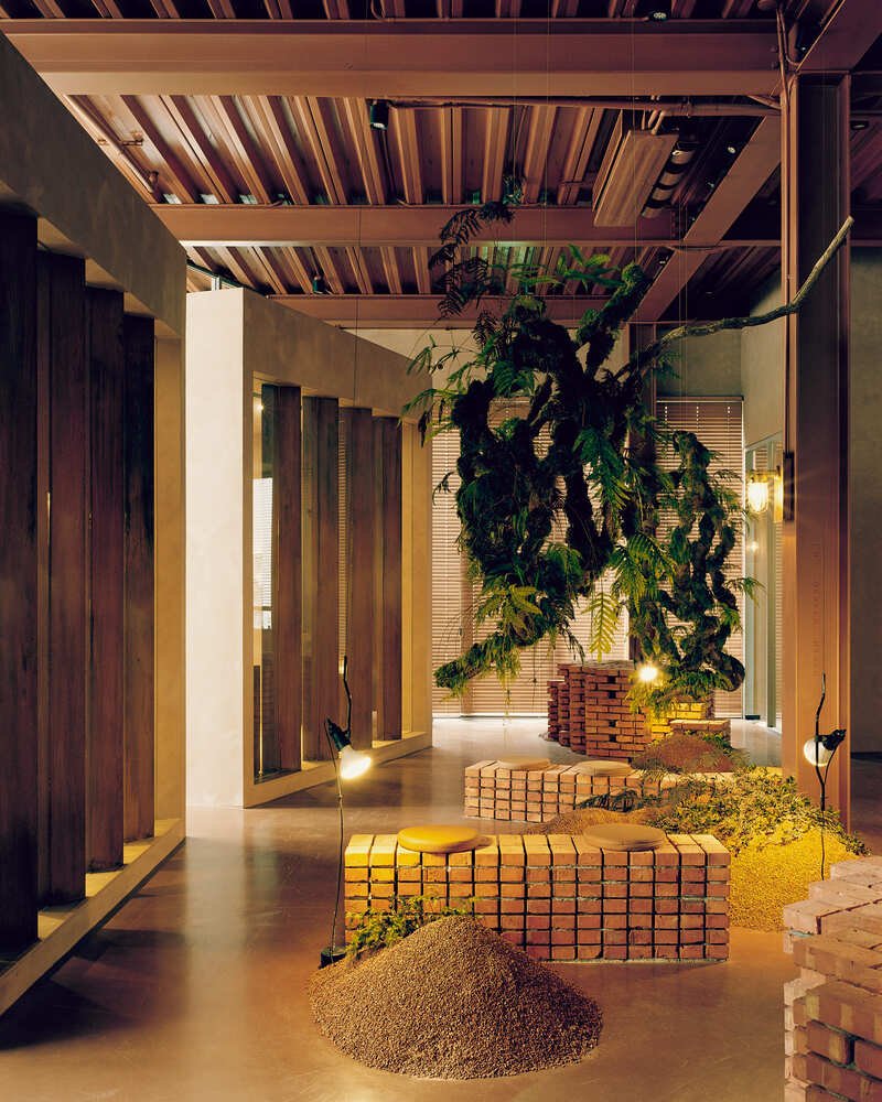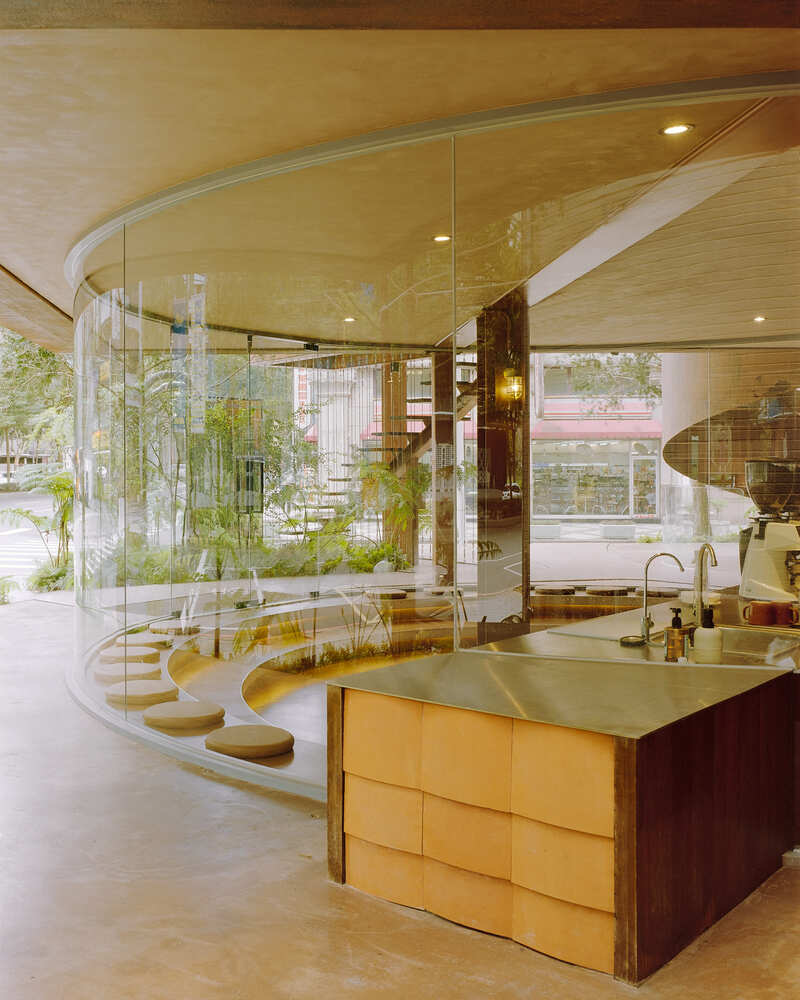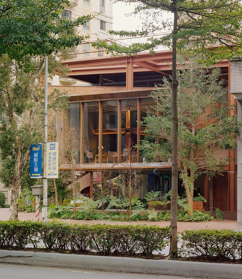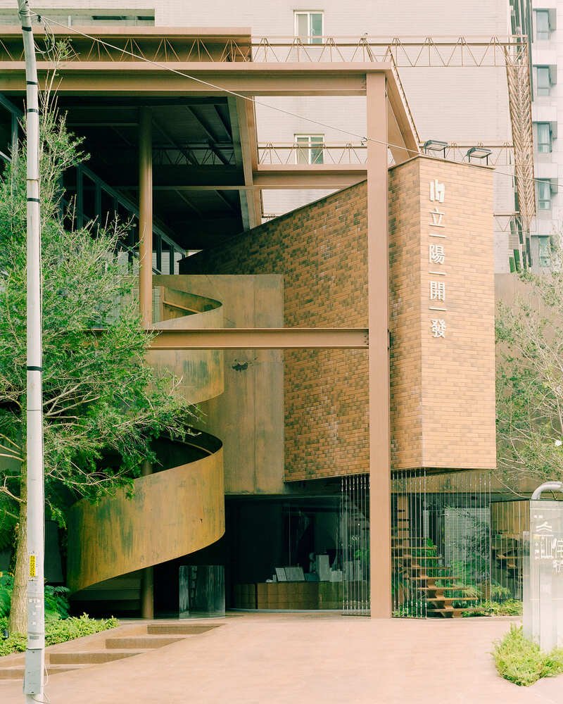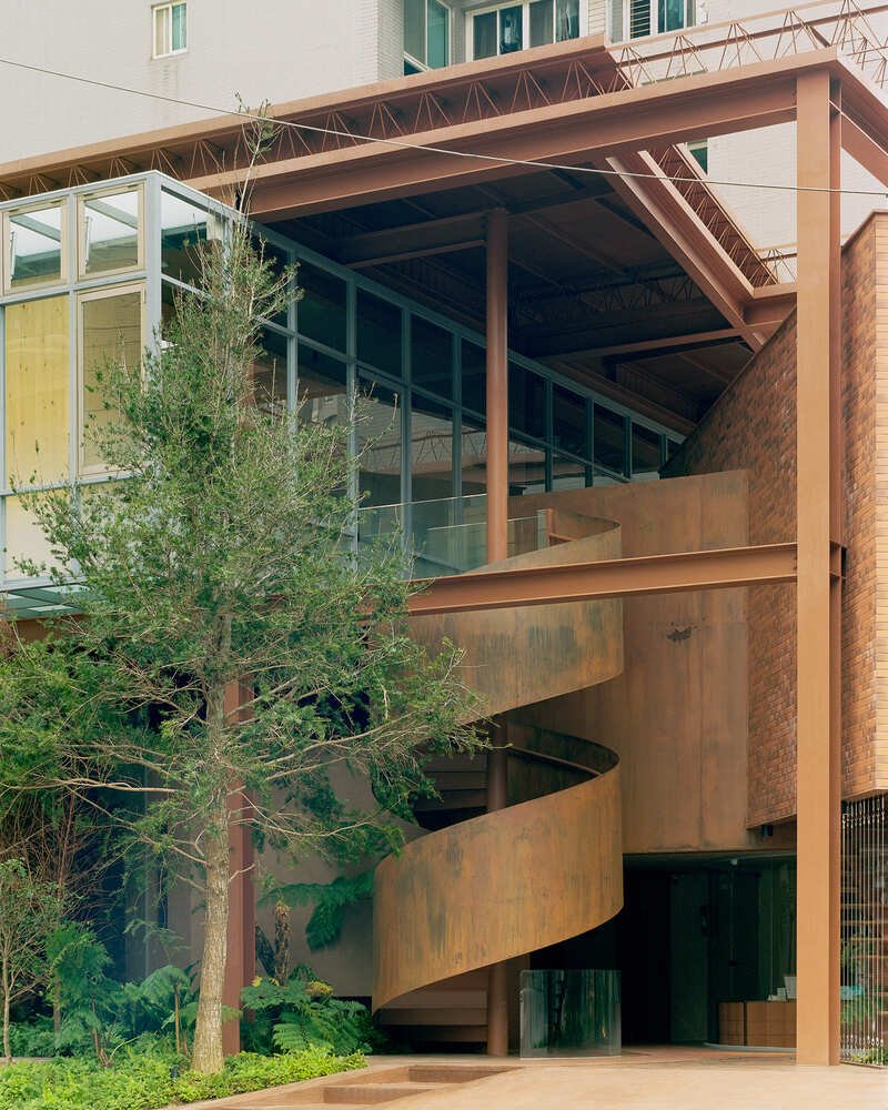 The architectural language of the building takes its roots from the steel framework of traditional Taiwanese factories and the brick kilns that shaped the developer’s origin. Rather than hiding this industrial lineage, the design amplifies it, using the raw, structural vocabulary of factories as a medium for contemporary reinterpretation. Volumes are inserted sequentially, emulating the additive logic of factory expansions where utility defines form. This approach allows the building to develop organically, adapting to its surroundings with asymmetrical balance.
