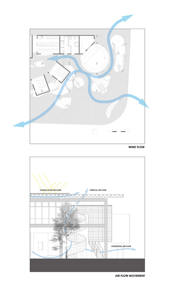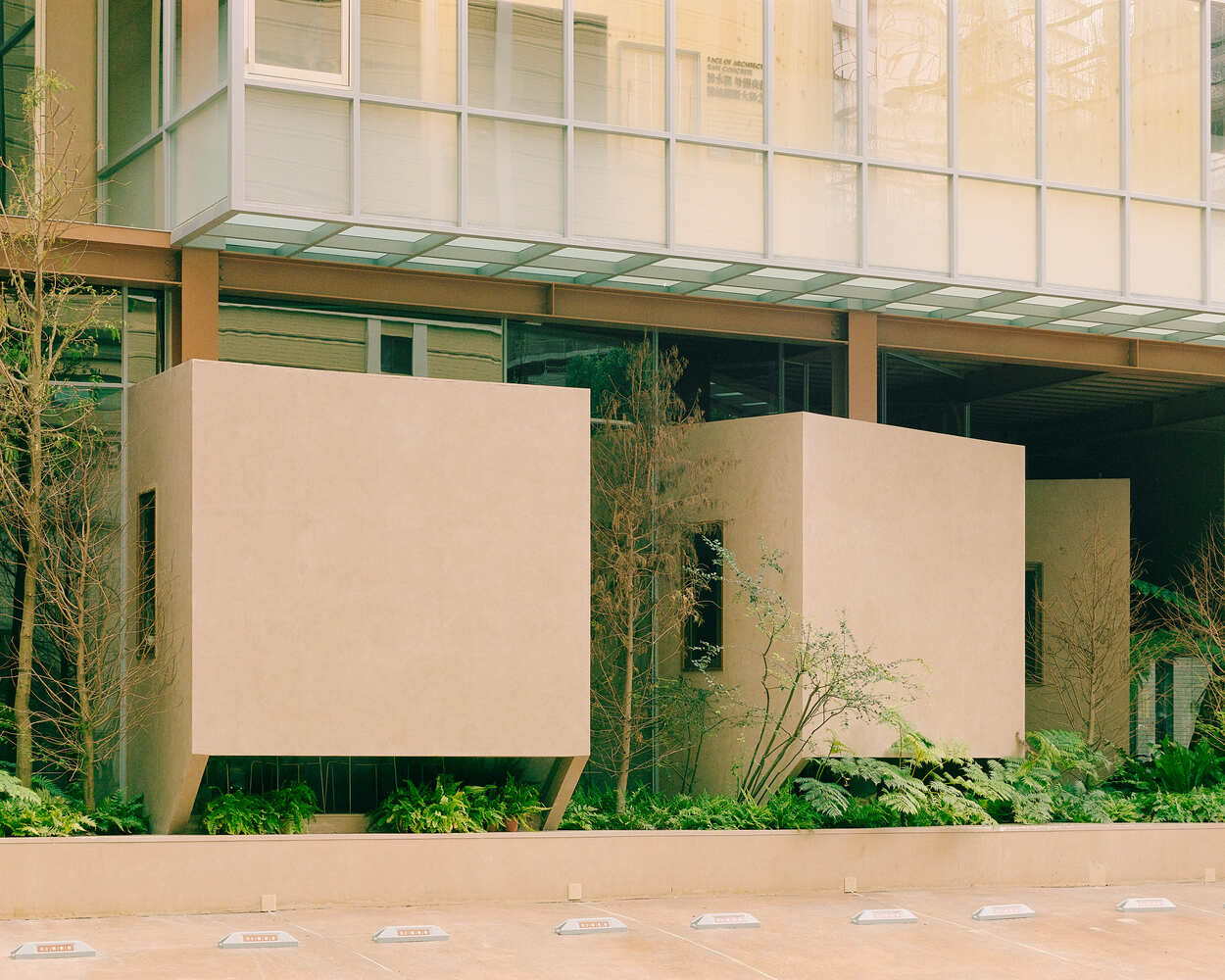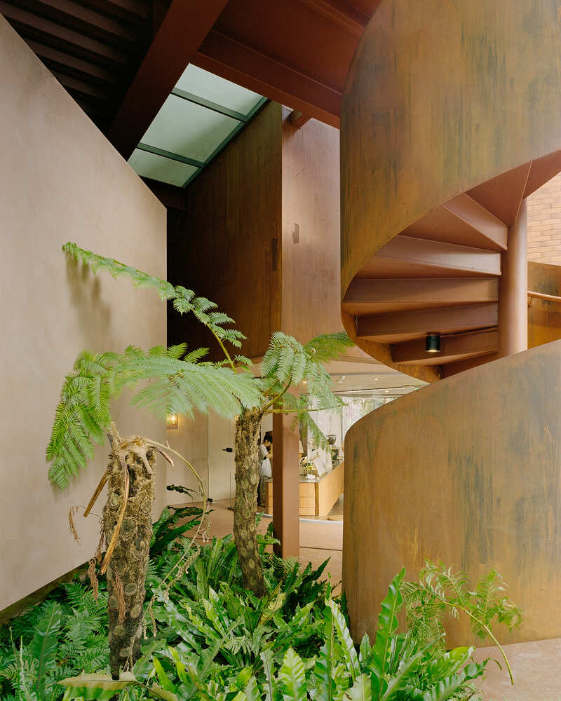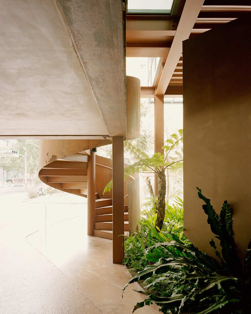 Three dominant themes emerge throughout the project: the forest, the city, and the factory. These elements are not represented through imitation but through translation. The forest is echoed in natural light, shadow play, and the spatial rhythm of green courtyards. The factory appears through material honesty—bare concrete, raw steel, utilitarian staircases. The city emerges in the building’s layered composition and fragmented volumes, reflecting the density and complexity of Taiwan’s built environment.