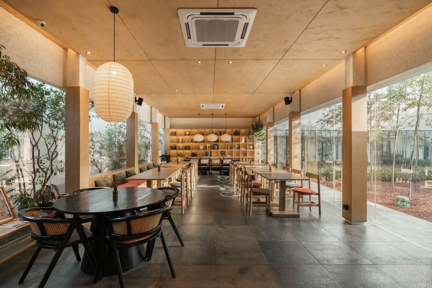Exploring BYASA Cafe's innovative design by Studio ASA, showcasing unique architectural solutions for creating serene, sensory-engaging coffee shop spaces.