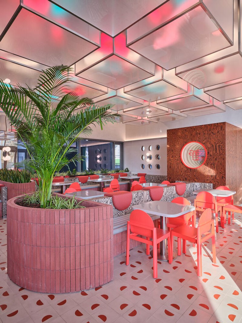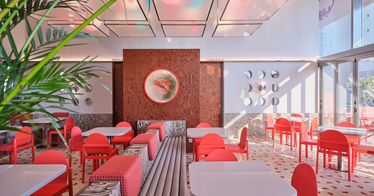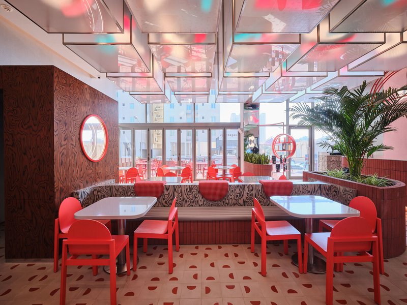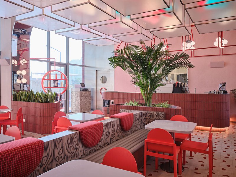 The design of the Dip'n'Dip Flagship Store is a masterclass in how architecture and interior design can encapsulate and enhance a brand's identity. The architects were tasked with refreshing the brand's image, resulting in a space that bursts with vibrancy and warmth, anchored in the brand's signature red and infused with playful, refreshing colors from the brand's palette.
