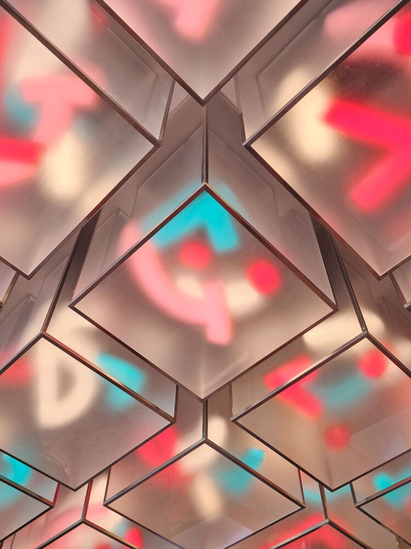 At the heart of the store's design is a rich tapestry of textures and materials that create a dynamic, visually engaging environment. From the tactile charm of rough pink surfaces and the gleaming appeal of reflective chrome elements to the raw graininess of red brick and the striking visuals of Alpi wood grain, the store offers a multi-sensory experience that delights customers.