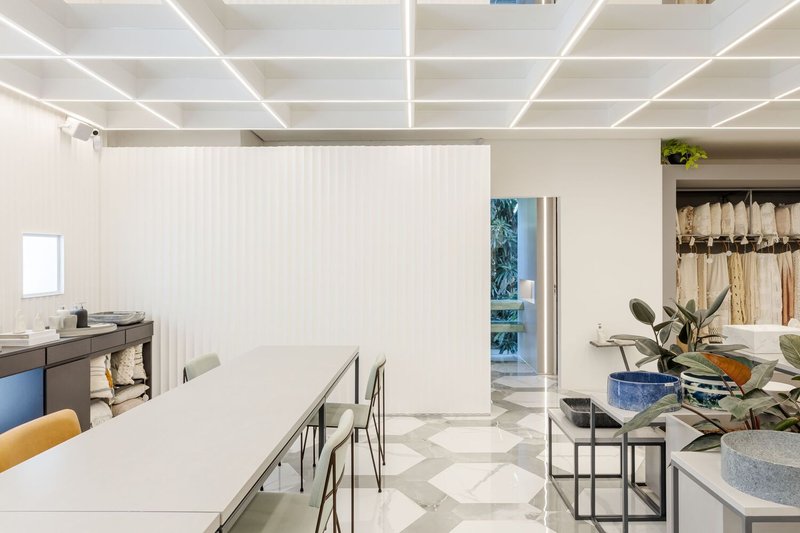 The architecture and interiors of Atelier Colormix are a testament to the versatility of materials and textures. The main exhibition area and the secondary room, which houses administrative functions and a coffee zone, are artfully designed to engage and inspire visitors.