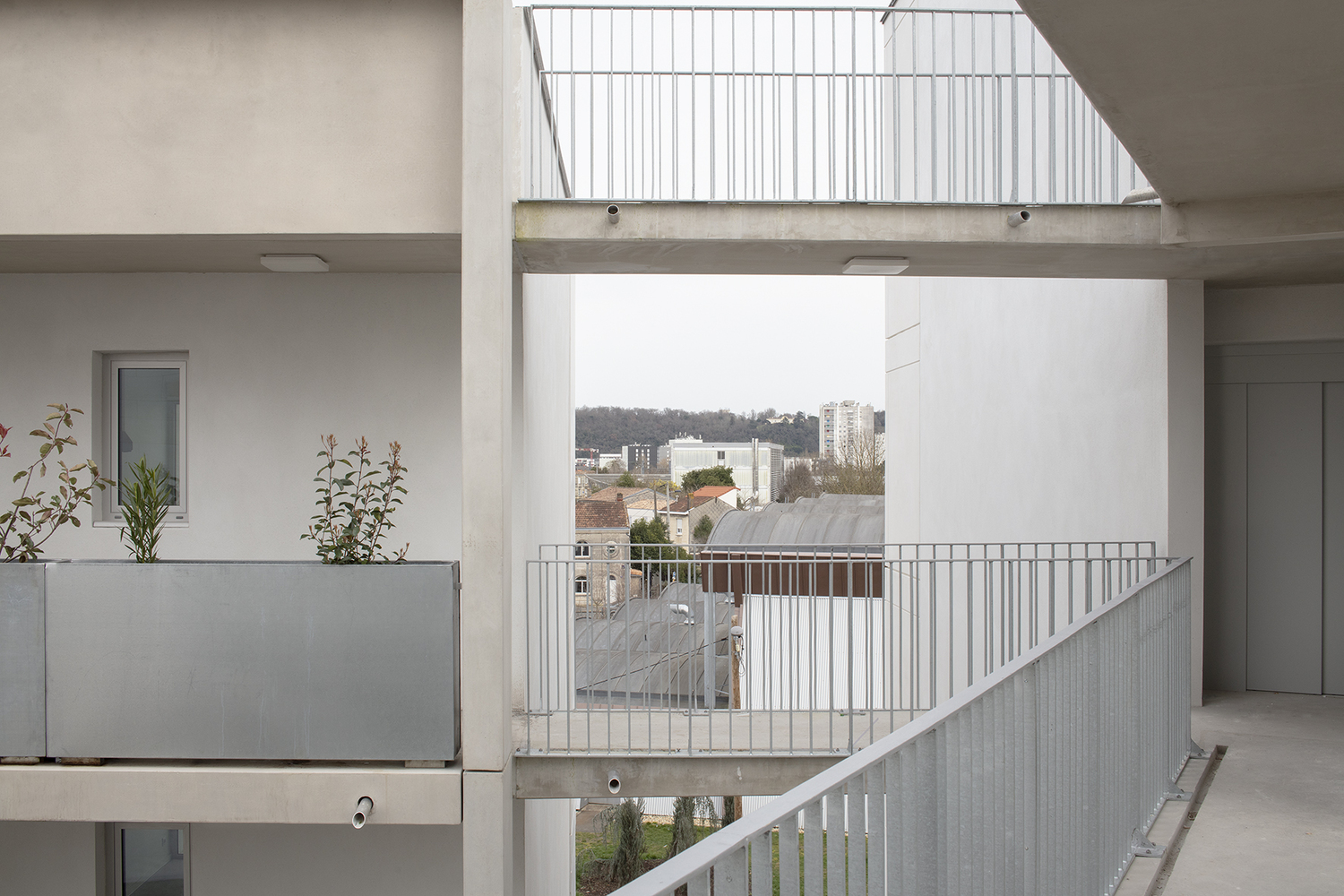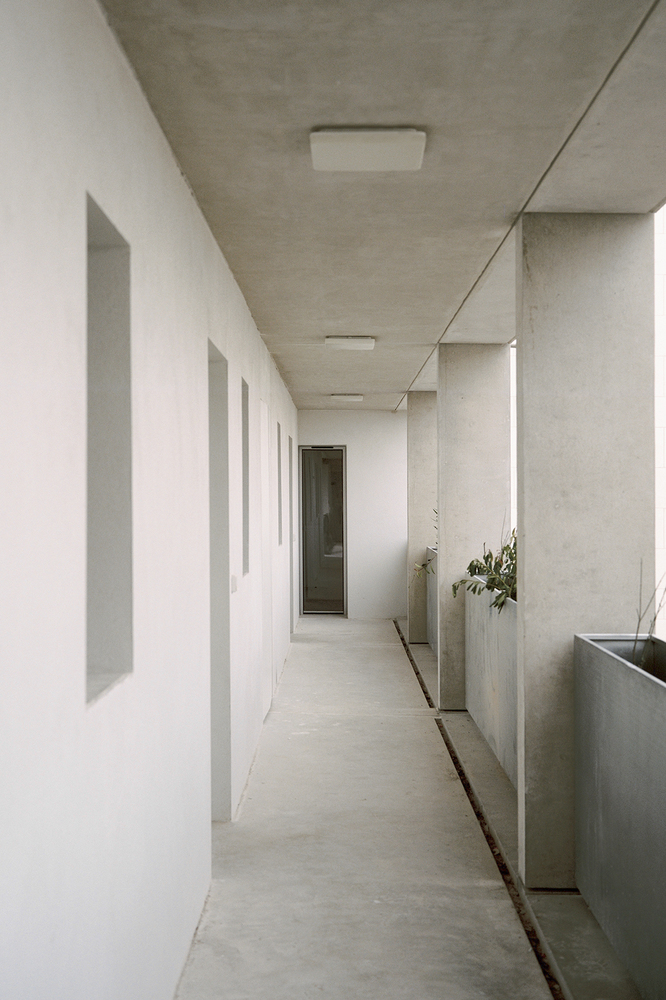 With clean balconies, concrete handrails, and open transitional spaces, the architecture articulates an understated modernism that is both resilient and adaptable. It is a building that does not shout, but instead supports the rhythms of everyday life with quiet strength.