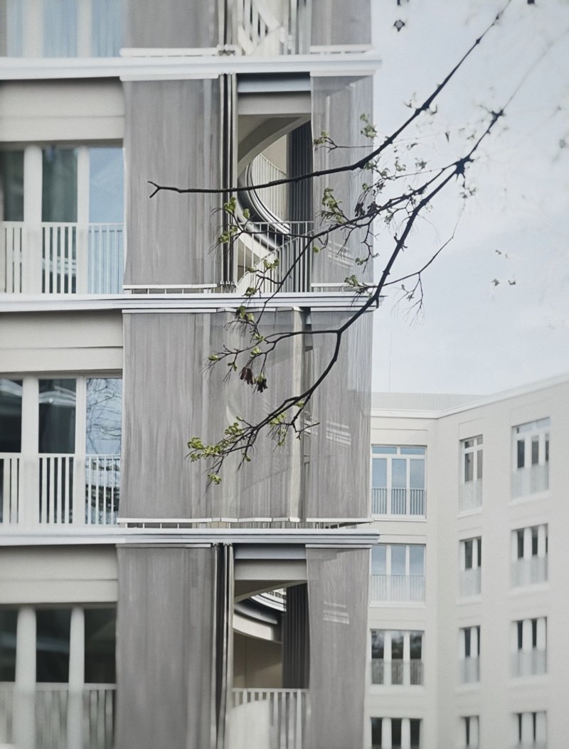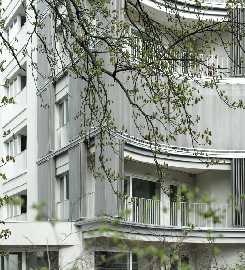 The design of the facade and the external features of the apartments are intended to interact dynamically with the changing seasons. During summer, the tree canopies provide natural shading, while in autumn and winter, the light facades serve as a backdrop to the bare branches, integrating the building with the cycle of nature.