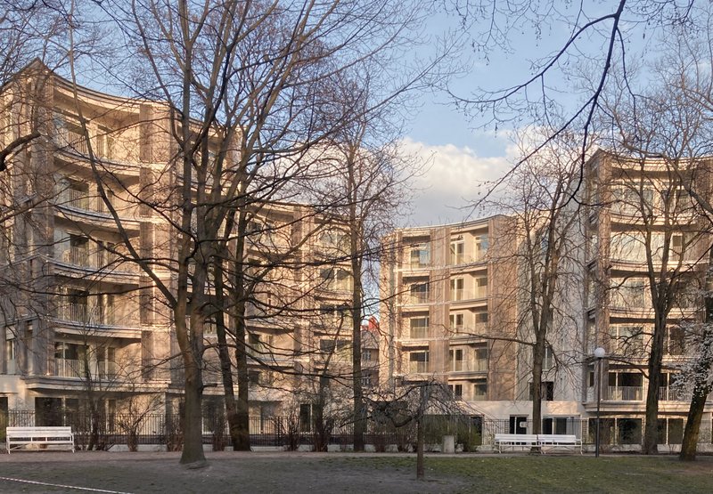 Perfumiarnia Estate, with its unique "wavy" facade and gracefully arched loggias, is an exceptional example of luxury apartment architecture. The estate’s design not only reflects high standards but also incorporates elements of the surrounding historical environment, providing a bridge between past and present architectural aesthetics.