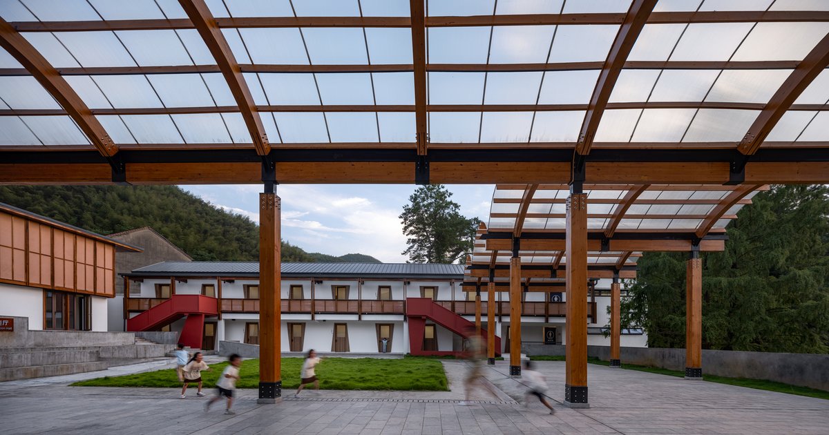 Sun'ao Primary School, situated in the mountains of Wangtan Town, encompasses an area of 6,700 square meters. Before the renovation, the school had been abandoned and was largely in ruins. The regeneration project, led by architects Shen Yue and Dai Wenzhu, focused on preserving the site’s original structures and adapting the school to serve as a youth center and research camp.