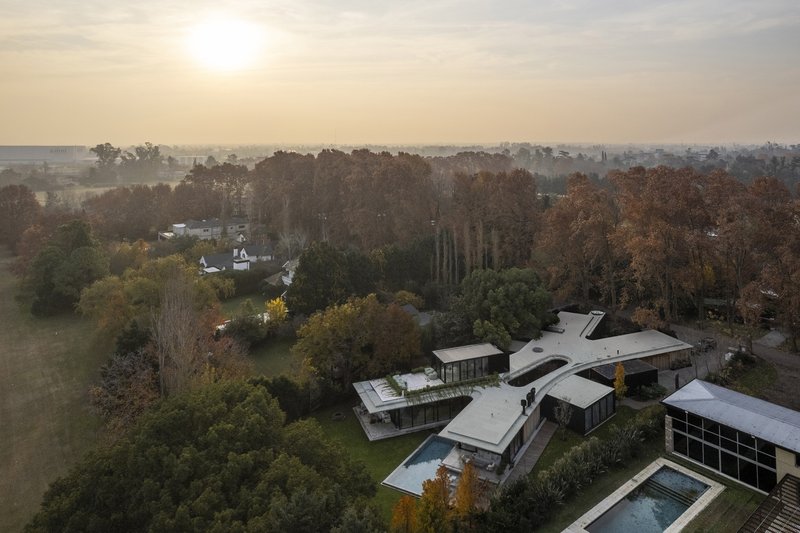 The X House, located in Ituzaingó, Argentina, is a unique single-story residential design created by Estudio Geya. With a footprint shaped like the letter "X," the design maximizes the available land while respecting the surrounding environment. The project focused on privacy, seamless integration with nature, and efficient spatial organization, creating a home that enhances the lifestyle of its inhabitants.