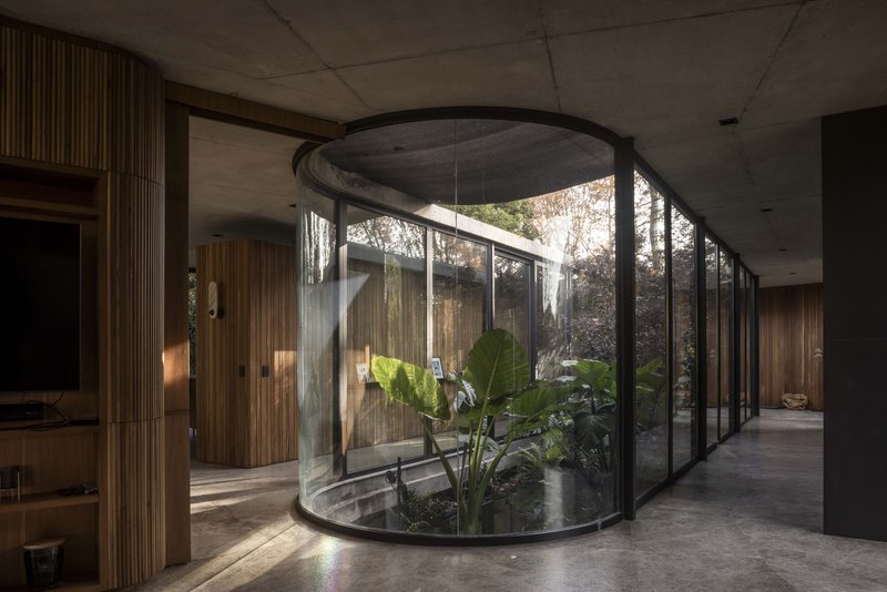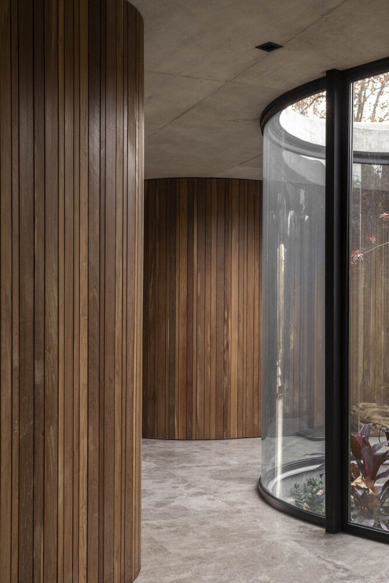 The materials chosen for the construction of the X House emphasize simplicity and natural beauty. Concrete, wood, and stone are used in their raw forms, allowing them to harmonize with the surrounding vegetation and light. This approach creates a warm, inviting atmosphere while enhancing the connection between the house and its natural environment. The use of natural materials, combined with carefully designed landscaping, further blurs the line between interior and exterior spaces.