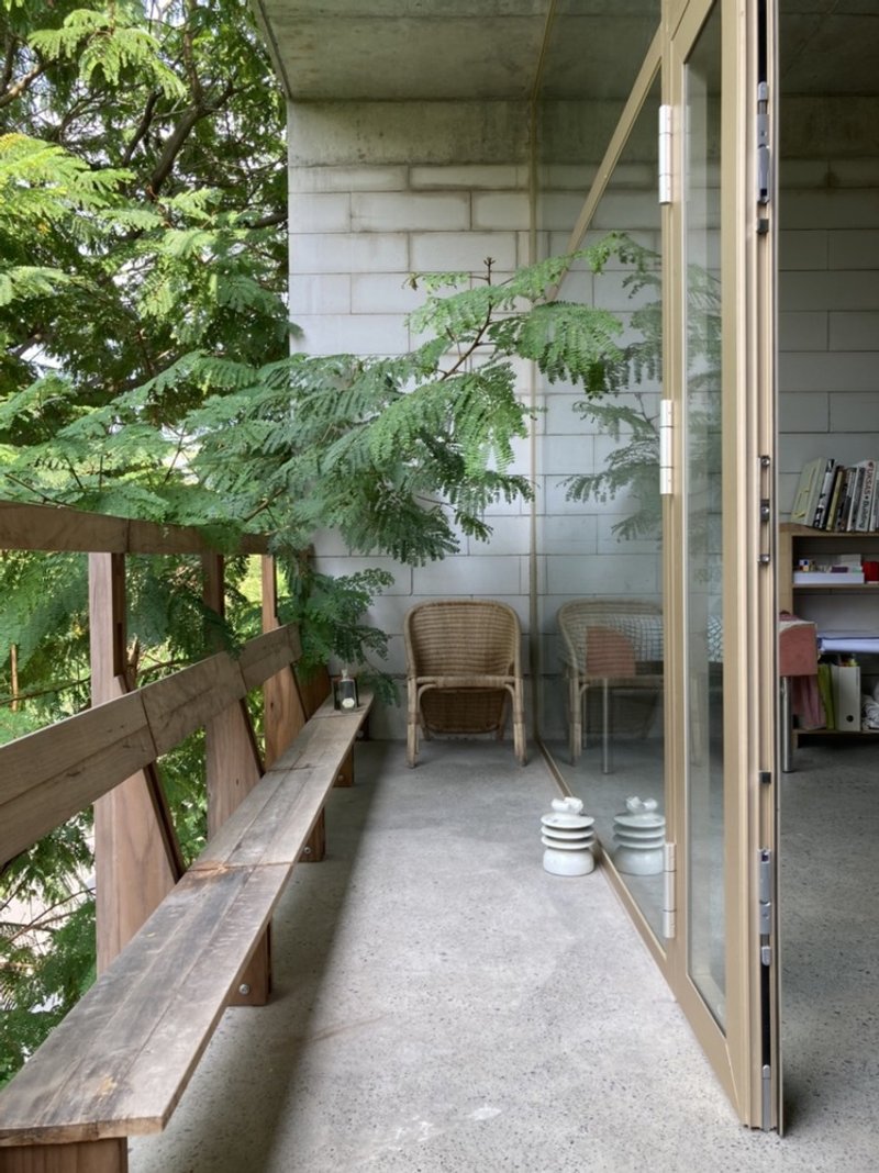 Sustainability is embedded in both the material palette and construction methods. LAITA Design Studio prioritized accessible, cost-effective materials such as onsite concrete and industrial plywood, reducing waste and simplifying the construction process. A steel frame system forms the structural backbone, ensuring stability and longevity while supporting open, flexible interiors.