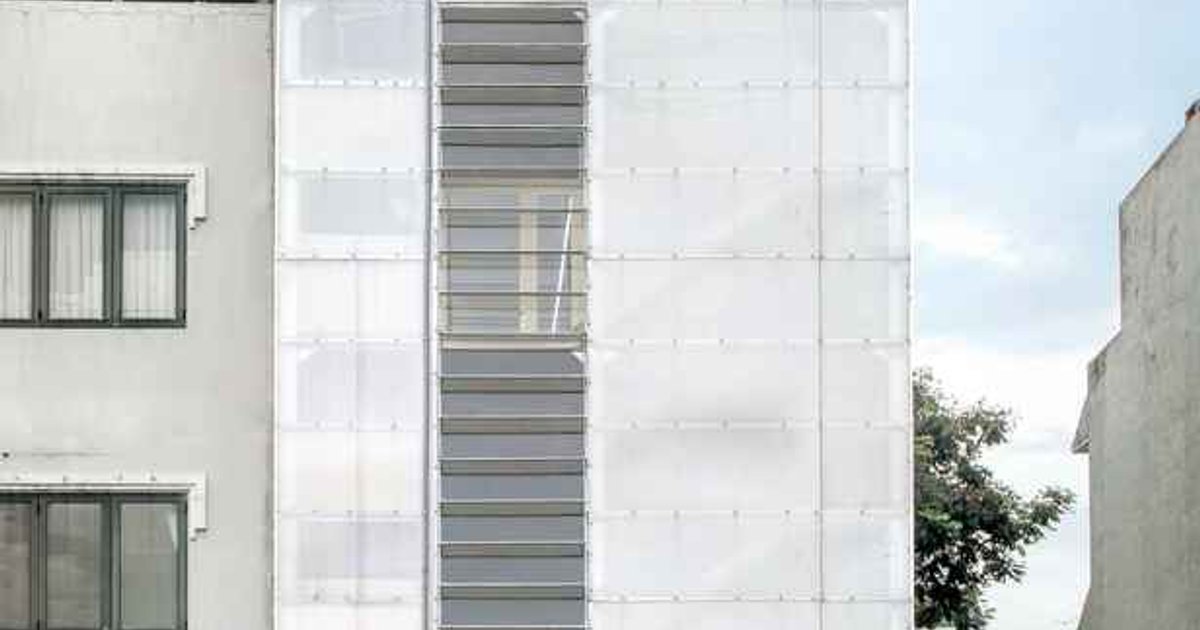 A compact four-story design studio with flexible workspaces, sustainable materials, and polycarbonate façades that maximize daylight, creativity, and environmental performance.