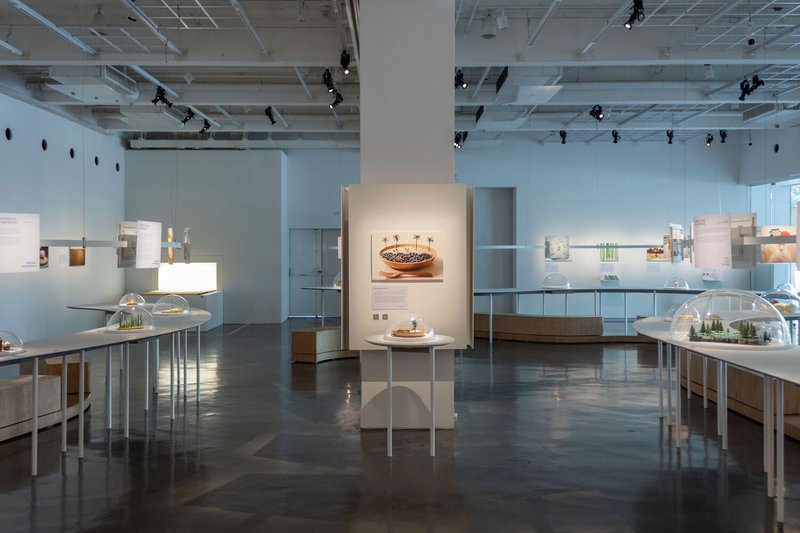 FGMF Architects employed a minimalist design strategy for the display units. With slender, white lines, the displays are deliberately understated to ensure that Tanaka's vibrant and detailed sculptures remain the focal point. This approach underscores the exhibition's philosophy of simplicity and elegance, allowing the miniature worlds to captivate the audience fully.