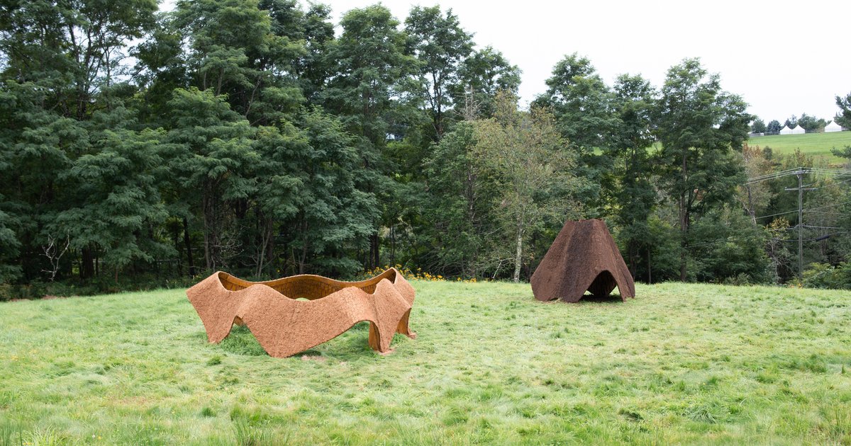 Resting gently on the Woodstock grounds, the fluid and organic forms of the pavilions resemble golden-brown ribbons caught in motion. The project not only demonstrates an aesthetic sensitivity to its environment but also promotes a discourse on biodegradable architecture and sustainable design innovations.