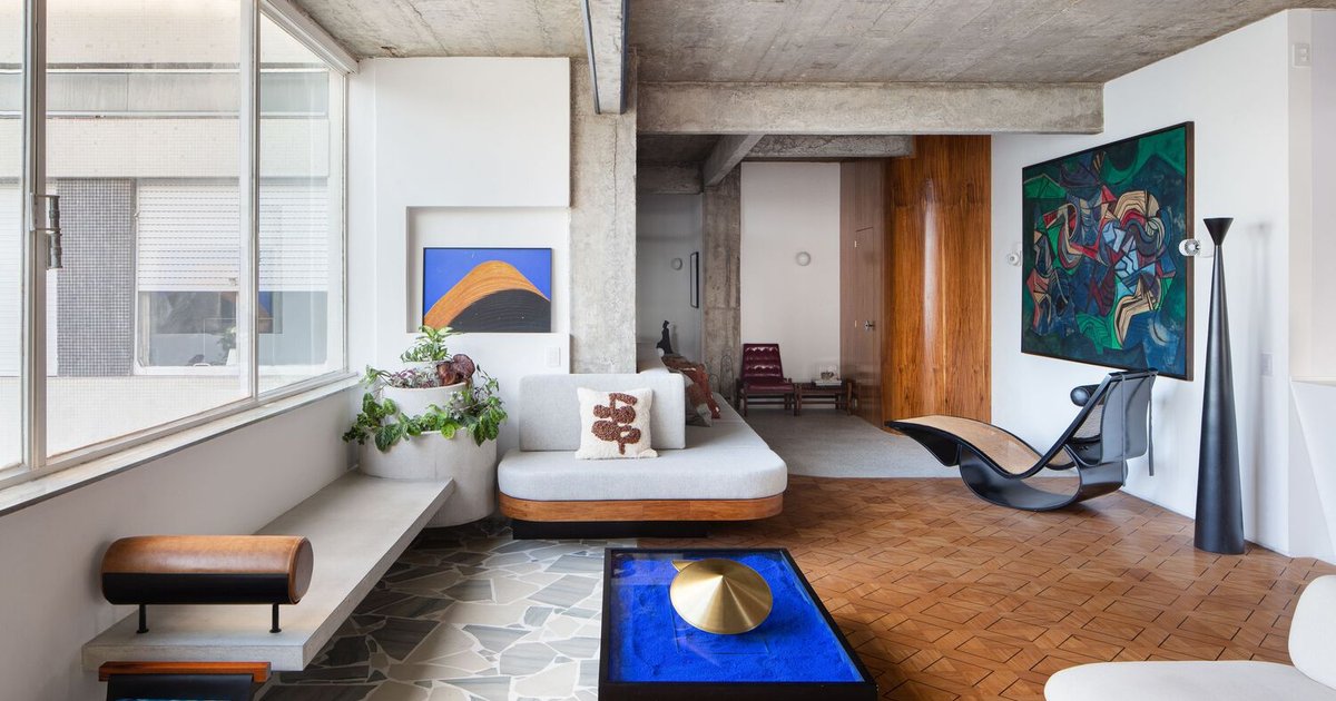 Brutalist-modernist São Paulo apartment by ZALC Arquitetura, blending art, curves, and restored materials for refined spatial and cultural harmony.