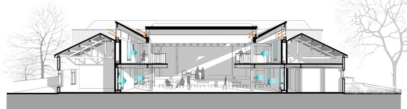 Inside, steel structures support the raised roof, allowing skylights and side-lighting to fill the performance hall. The mix of wood, brick, and steel establishes a tactile environment, giving audiences an immersive sensory experience. The design also introduces multifunctional spaces adaptable for cultural events, exhibitions, and community gatherings.