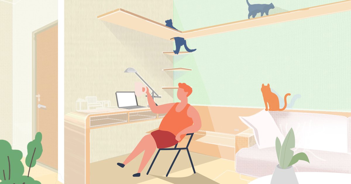 - In the limited single room, thanks to the special furniture, people can live with their pets better. . .