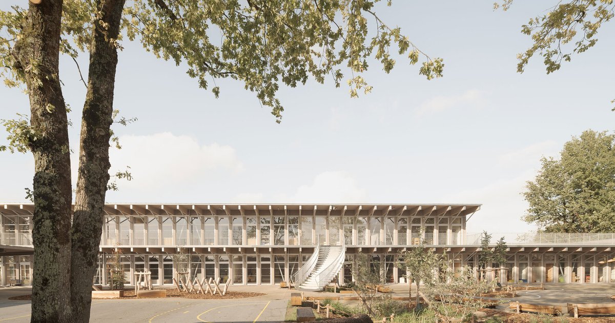 Designed by Barré Lambot Architectes, the new Jules-Verne School in Montaigu-Vendée, France, is a thoughtful educational complex that blends timber construction, bioclimatic design, and community-oriented planning. Completed in 2025, the 1,885 m² school serves both preschool and elementary students, offering a warm and nature-driven learning environment.