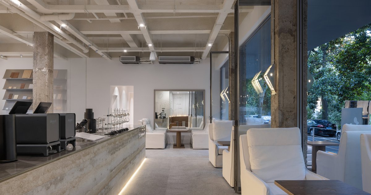 The spatial concept hinges on permeability—allowing the surrounding natural environment to enter, reflect, and shape the interior. The architecture frames the exterior greenery not as background scenery, but as an active design element. Folding windows introduce fresh air and shifting light, while the original structural facade is preserved, layered with stainless steel and clean aluminum panels that interact with shadows, weather, and time.