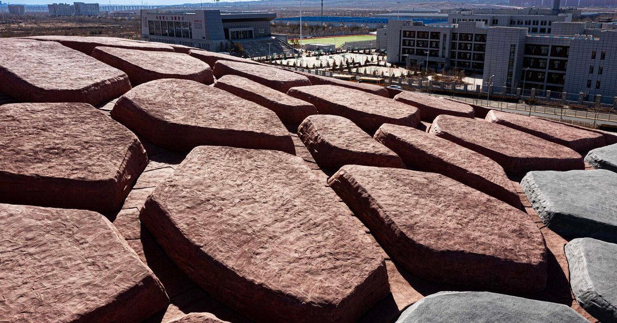 Inspired by magma flows and the fiery hues of red sandstone, the design captures the dynamic energy of natural geological formations. Using parameterized design methods, the architects organized the red sandstone surfaces to reflect the natural characteristics of the terrain.
