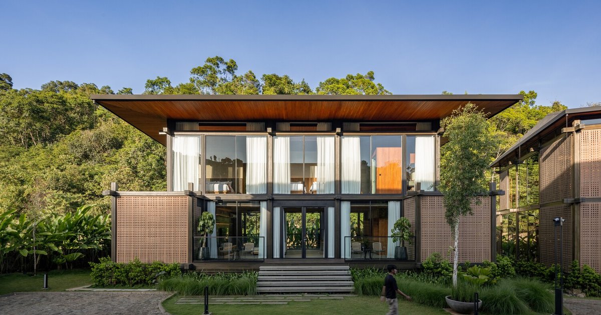 Located in the lush hills of Kecamatan Megamendung, Indonesia, Kencana Valley Compound is a remarkable architectural masterpiece that seamlessly blends vernacular architecture with modern design. Created by K-Thengono Design Studio, this 880 m² compound reinterprets the rich traditions of Sundanese architecture while incorporating contemporary construction techniques and sustainable materials. Designed as a wedding venue, the compound consists of a chapel, a family villa, a bridal villa, a service building, and a scenic bridge. Every structure within the complex embodies the essence of Indonesian heritage, enhancing the natural surroundings and offering an unforgettable experience for guests.