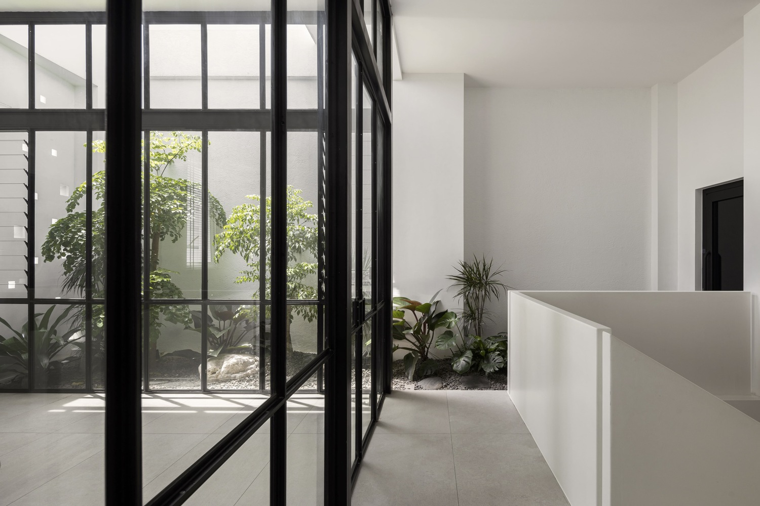 One of the standout features of Kirigami House is the emphasis on natural ventilation. The rear of the house incorporates breeze blocks, which are strategically placed to improve airflow throughout the home. This architectural detail not only serves a functional purpose but also adds a textural contrast to the smooth surfaces of the building’s façade and interiors.