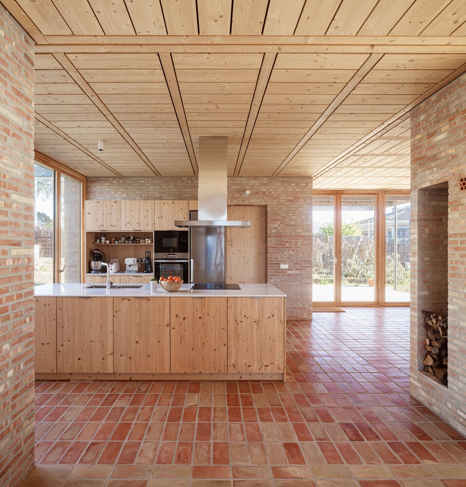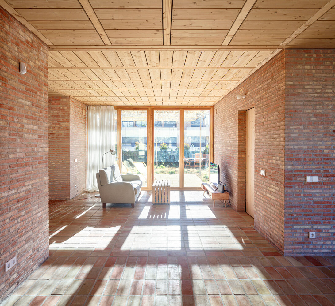 LA House by Alventosa Morell Arquitectes blends sustainable ceramic brick design, bioclimatic strategies, privacy, open living spaces, and energy-efficient modern architecture.